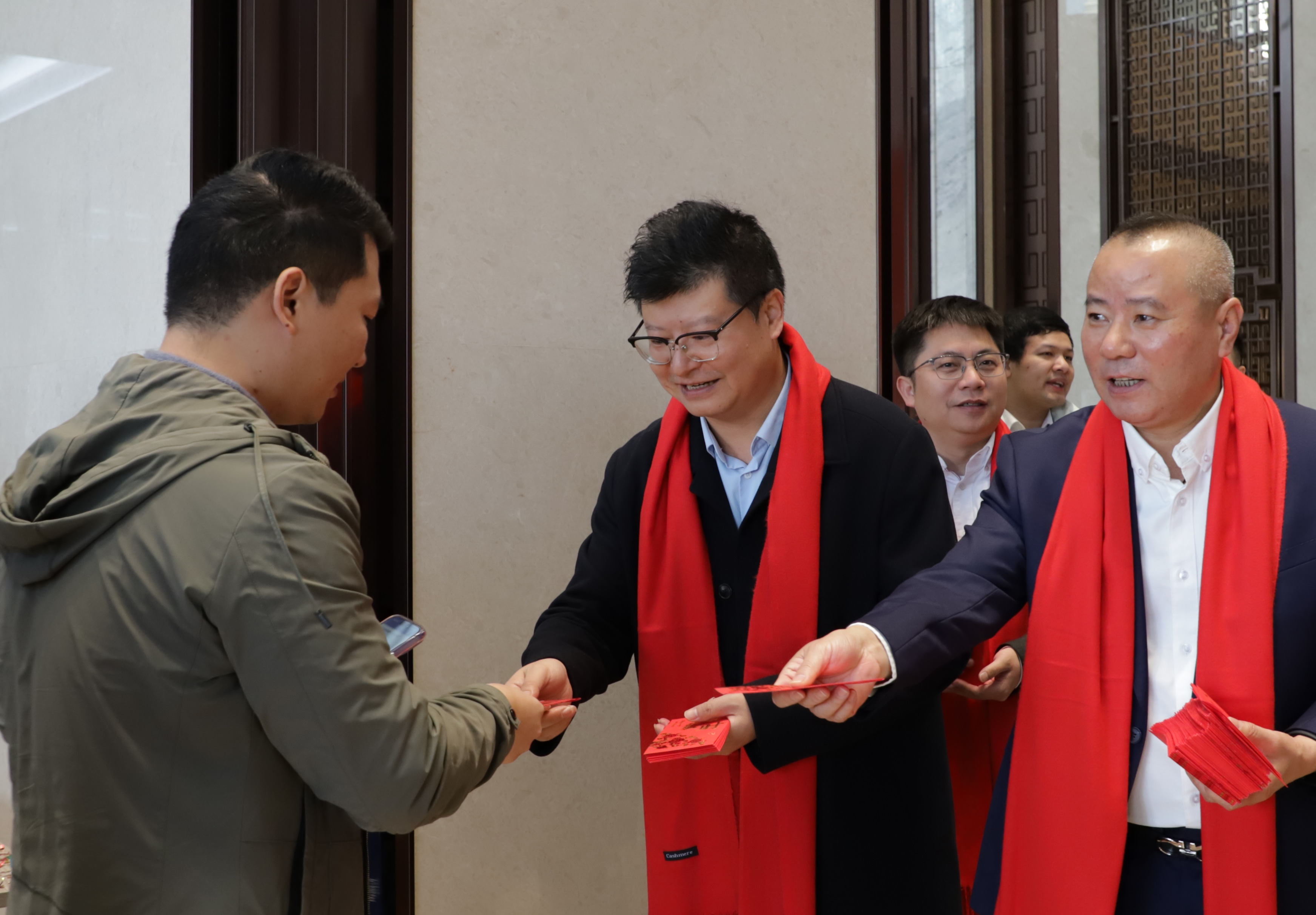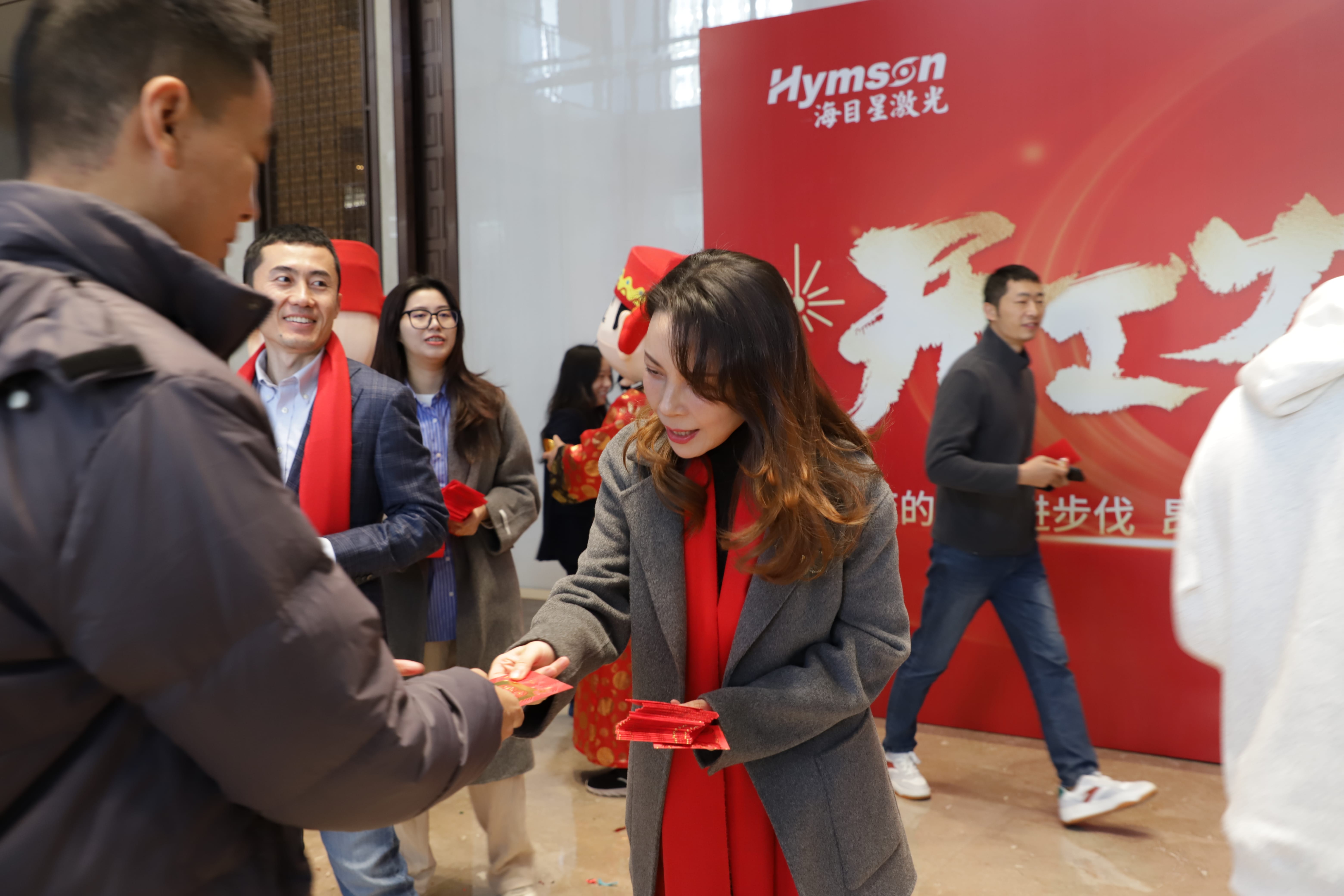 大年初八,海目星集團洋溢在開工的喜慶氛圍當中,董事長趙盛宇攜高層領導一行早早等候在海目星深圳總部一樓大廳。他們佩戴象征吉祥、福氣和好運的紅圍巾,熱情迎接每一位返回崗位的員工,并親手送上開門大紅包,祝福全體員工新的一年事業有成,續攀高峰!