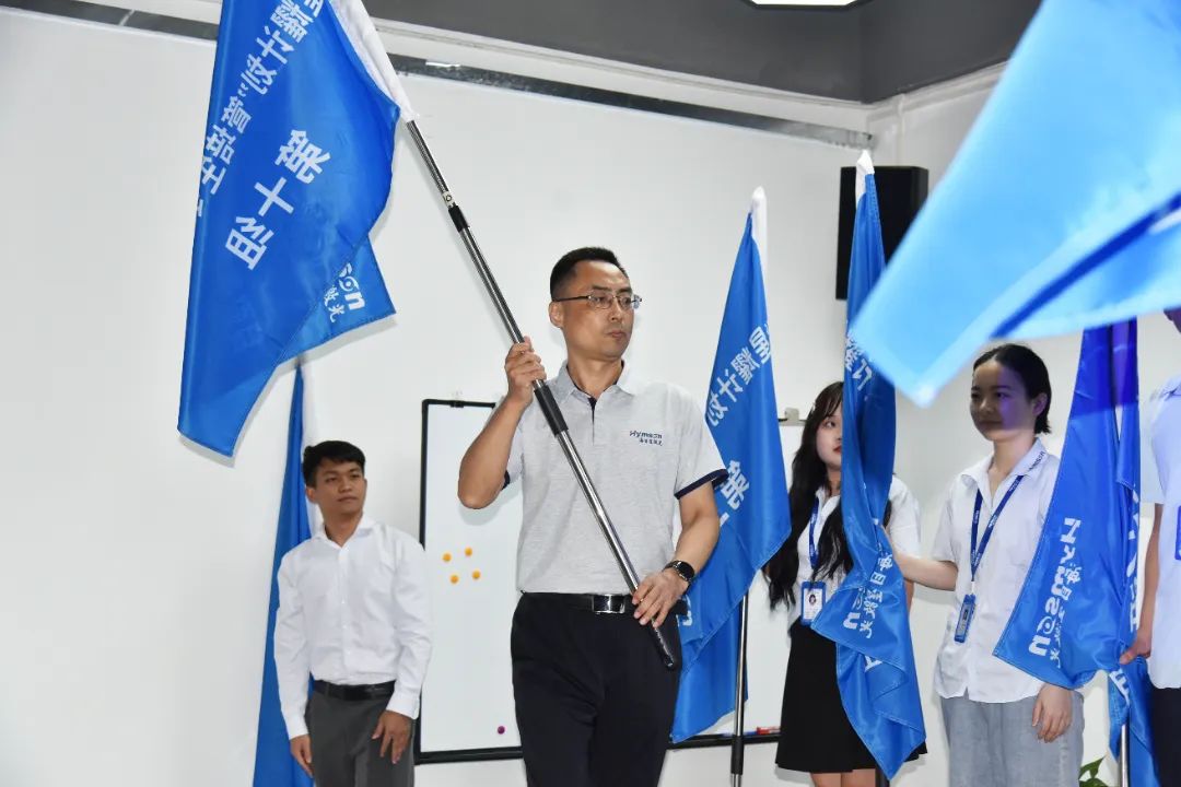 海目星文化的種子根植于每一個(gè)海目星人心底,需要在新生力量的土壤里播種、發(fā)芽、茁壯成長(zhǎng),生生不息。授旗儀式中,趙董、林總將代表海目星文化的旗幟交到2022屆10位組長(zhǎng)手中,接過(guò)旗幟那一剎那,代表海目星文化種子的傳承,在星耀學(xué)員們心中悄悄發(fā)芽。